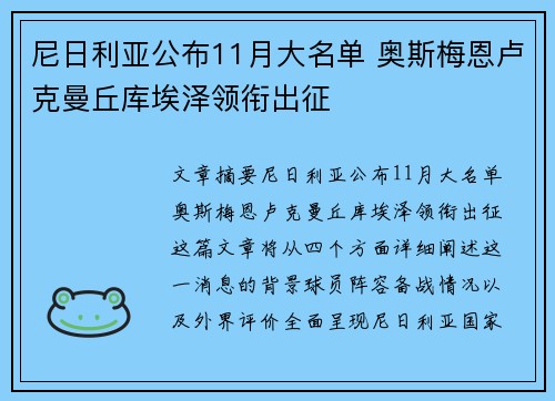 本文将详细探讨霍安-加西亚预计周末回归球队名单,并有望在国际比赛日后迎来复出首战的相关信息。文章分为四个主要部分,首先,我们将回顾霍安-加西亚的伤情和康复过程;其次,分析他回归对球队的意义和影响;第三部分着重探讨他回归后对战术体系的适应和改变;最后,我们将展望霍安-加西亚复出后的表现,以及他在未来比赛中的角色和目标。本文旨在为球迷和足球爱好者提供一个全面了解霍安-加西亚回归过程的视角,并探讨他复出...