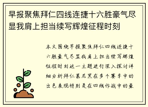 在足球的世界里,情感与信念往往比比分更能打动人心。近日,主教练科瓦奇在谈到球队伤病情况时,特意向受伤的许伯斯送上真挚祝福,希望他早日康复,并强调球队正站在一段伟大旅程的起点上。这番话不仅展现了他的人文关怀与领导魅力,也揭示了球队内部的凝聚力与宏伟蓝图。本文将从四个方面对这一主题进行深入探讨:首先,分析科瓦奇祝福许伯斯的言辞背后所体现的“团队温度”;其次,阐述他所说的“伟大旅程起点”所蕴含的战略与愿...